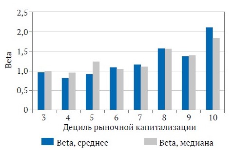 Рис. 4. Beta для выборки юниорных компаний с учетом децилей капитализации