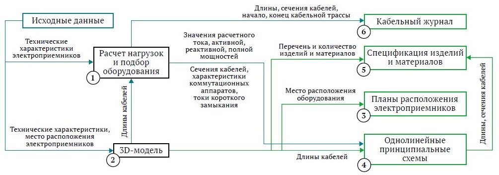 Поскольку расчет в программе происходит автоматически и практически не требует дополнительных действий от проектировщика, при необходимости возможно с минимальными трудозатратами многократно обновлять его результаты в случае корректировки исходных данных. Это повышает гибкость процесса проектирования и адаптирует ЦПО к условиям постоянных изменений компонентов системы в течение проработки решений по электроснабжению.